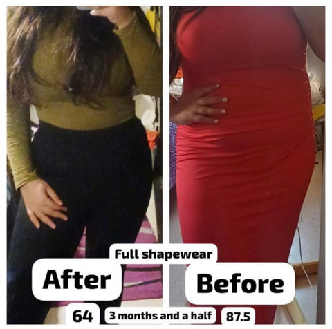 My weight was 87.5 kilograms after using your full shapewear my waist reduced alot and my weight is 64 now , i feel more confident can’t thank you enough.